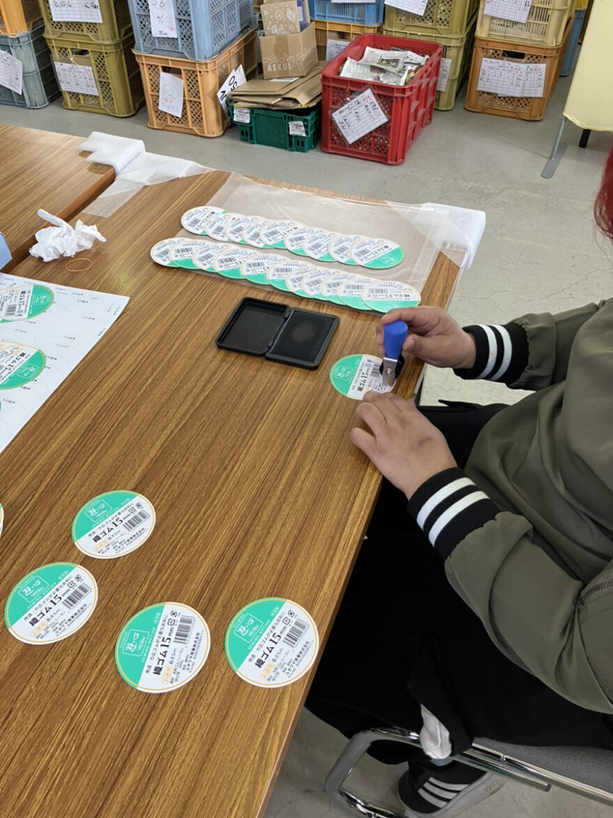 決められたスペースにハンコ押しをします。