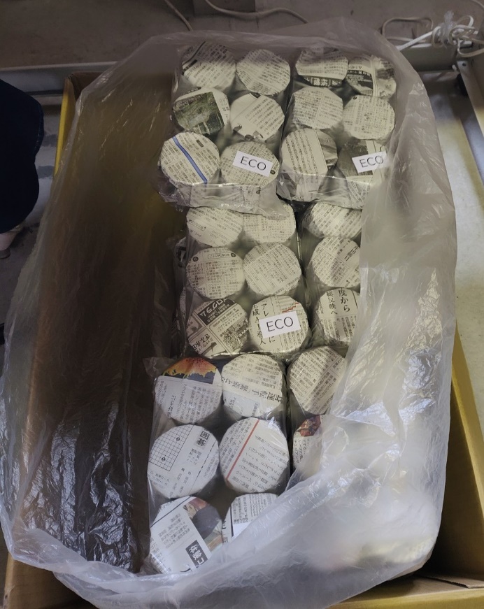 (紙袋の中の新聞紙はメンバーから提供して頂いています。)