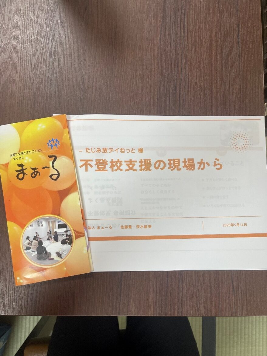 今回は、NPO法人まあーるさんの「不登校についての現場のお話」。①発達障害のあるお子さんのケース②親と不仲なケースについてです。保護者と支援者の両方の立場で、わかりやすく教えて頂きました。