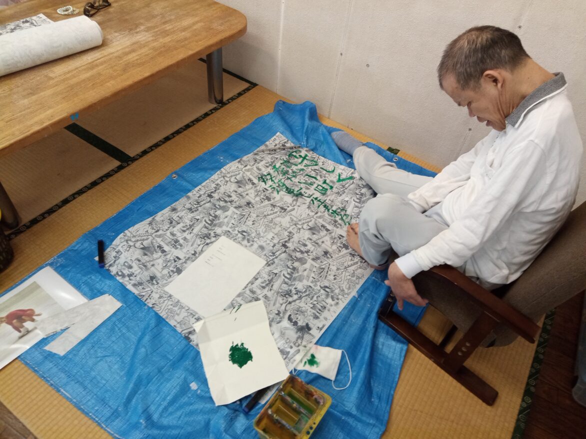 一浩さんは、ご自分で作られた詩を大きな紙に書いています。
