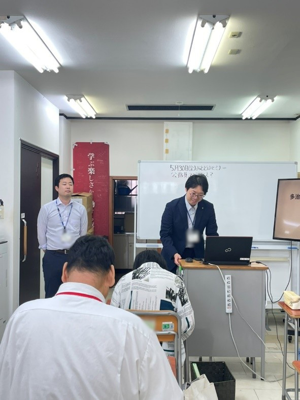 今回は多治見市役所 総務部人事課の職員の方々をお招きし、「多治見市役所の仕事について~公務員ってどんな人?~」と題して公務員のお仕事について教えていただきました。