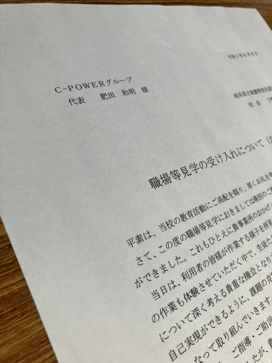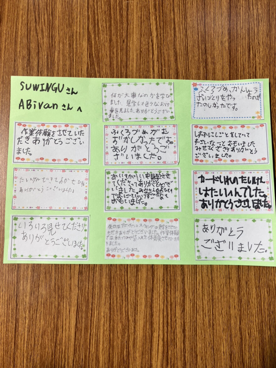 先日バスで見学に来てくださった支援学校の皆さんから、見学のお礼状が届きました°˖✧◝(⁰▿⁰)◜✧˖°