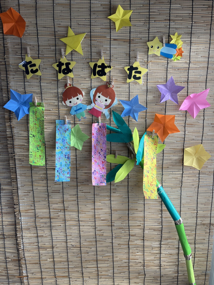 七夕の日には、お家に持ち帰り次の日には、ジュニアから「お家にね、お願い事飾ったよ」と教えてくれました。