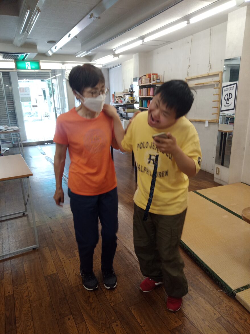 ある日の午後、職員が音楽をかけてみんなにダンスを促すと康生さんと学さんが楽しそうに踊られました。