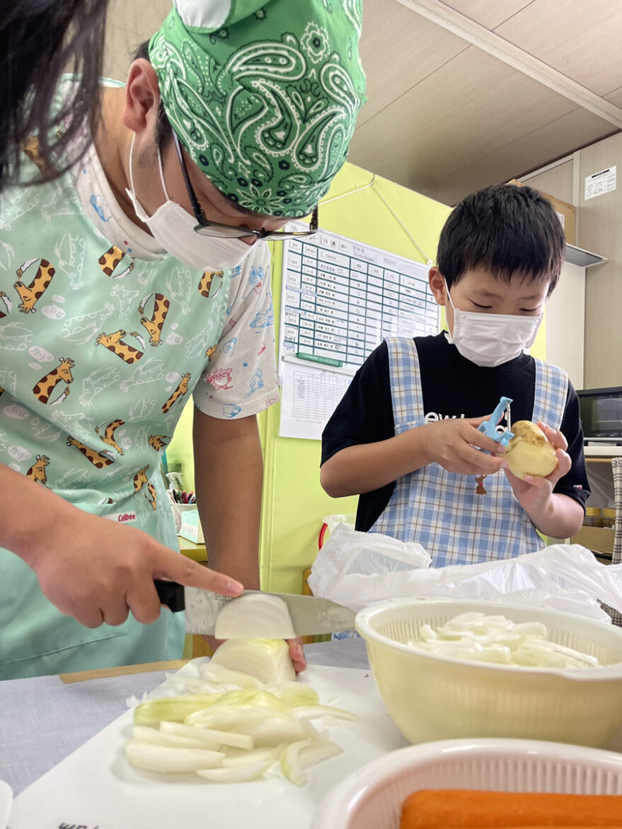 放課後等デイサービスIamでは、夏休みの特別活動として「食育」の一環で調理実習を行いました。