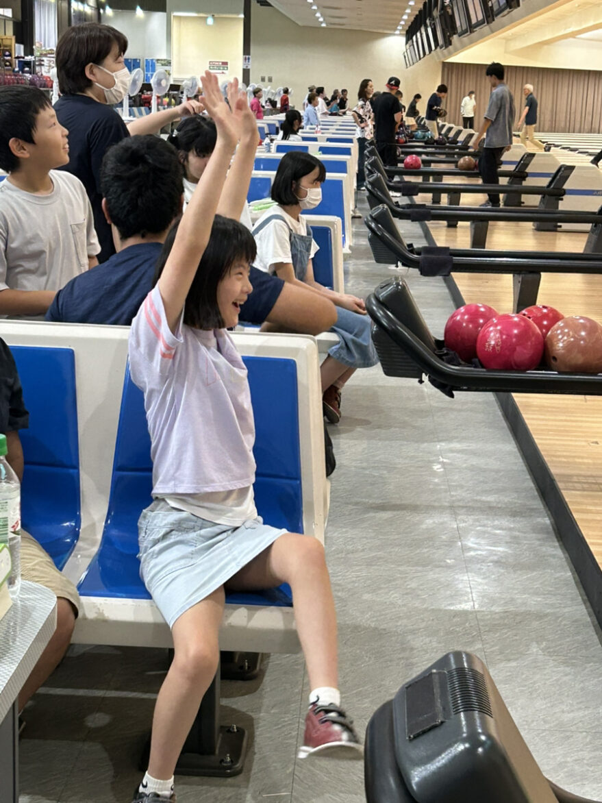 最初は「ちょっと重い…」「まっすぐ行かないかも…」と不安そうだったジュニアも、投げるたびにフォームが安定し、ピンが倒れる音に笑顔が広がっていきました。