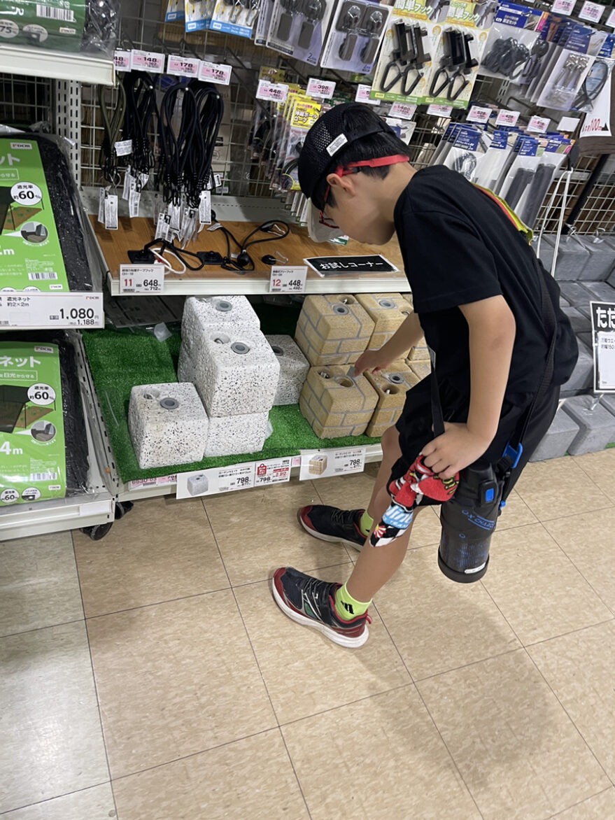スタッフの側から離れる事がなく、手を繋いで行動し、事前に図ったのがあるのでメモ用紙を見ながら「どれがあうかな?」などと楽しく会話をしながら、店内を見渡し、他の物にも興味を示していた。涼しくなるための買い出しが終わると8月に行われるIamのお祭りの買い出しも一緒にしました。