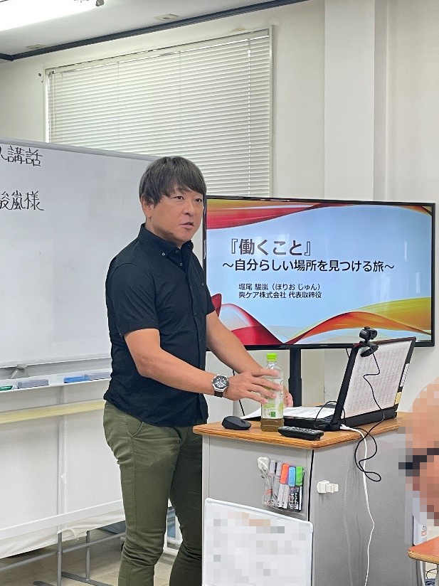 8月は、爽ケア株式会社 代表取締役 堀尾 駿嵐様にお越しいただきました。