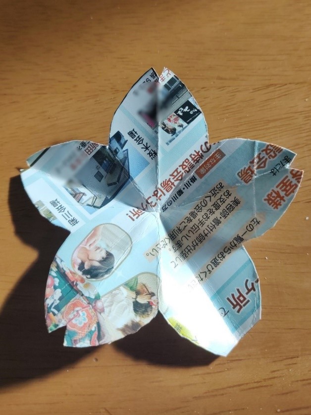 そこで、切るだけではなく「折る」「描く」といった工夫を加え、星形や桜の形を作る取り組みを始めました。 少しの工夫で、星や桜のほかにもいろいろな形が生まれます。作業にちょっとした楽しみが加わることで、集中しやすくなり、やりがいも感じられます。